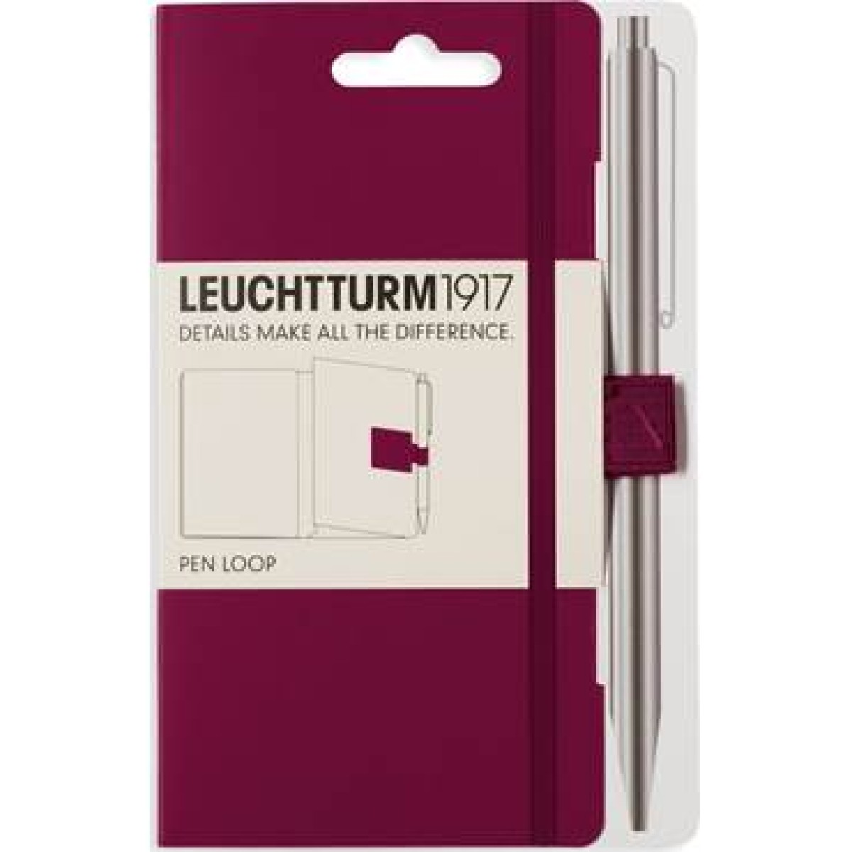 Leuchtturm1917 pennhållare - En självhäftande pennhållare med robust elastisk ögla. Pennhållaren passar de flesta storlekar på pennan. Den självhäftande plattan kan enkelt fästas på insidan av omslaget. Med pennhållaren bär du alltid med dig din favoritpenna tillsammans med anteckningsboken..